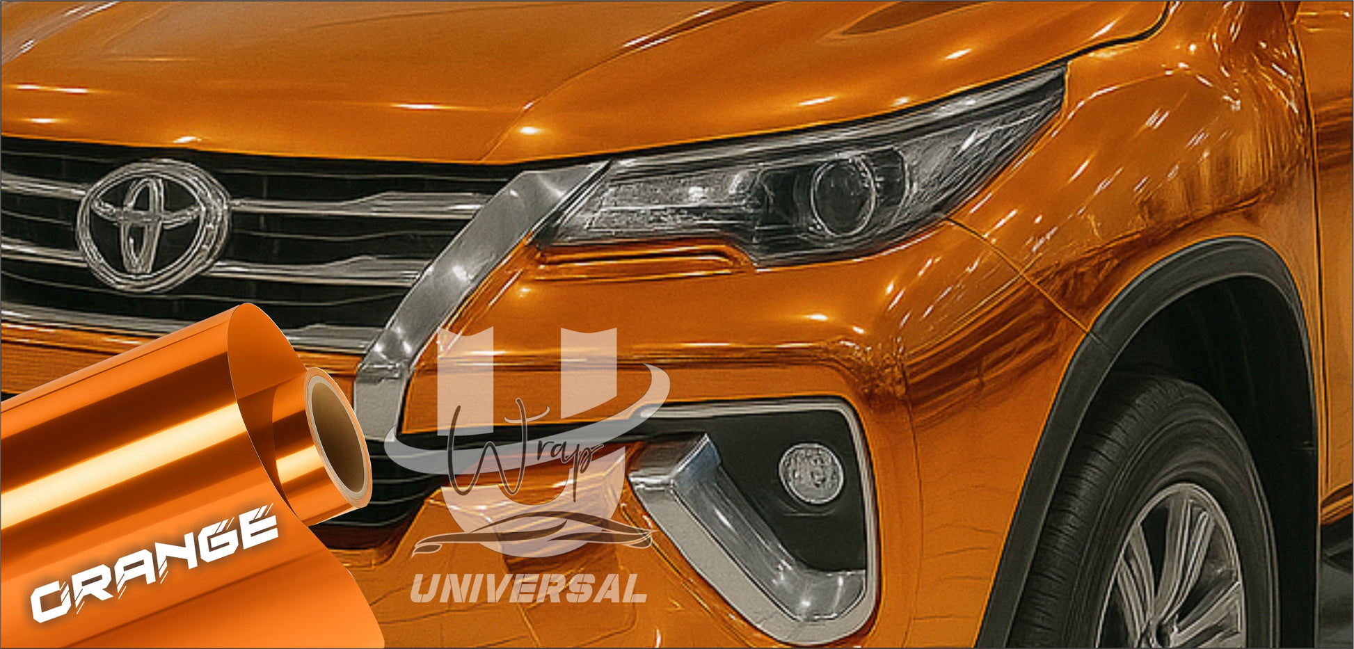 Wrap Cromado Cobre Solar combina un tono naranja metálico cálido con un efecto espejo de alta reflectividad. Produce un acabado elegante, pero llamativo, ideal para quienes desean un estilo moderno con un toque de personalidad. Su brillo profundo realza cada curva del vehículo y crea un impacto visual inmediato.